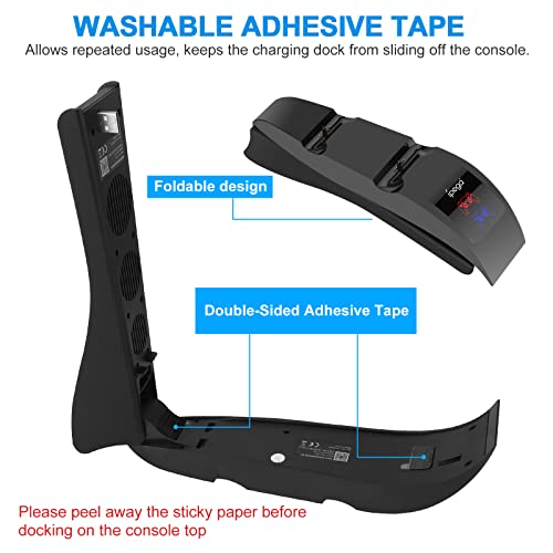 - Ahorro de espacio: Las pegatinas adhesivas de doble cara en la parte trasera están diseñadas para fijar la base de carga y el ventilador. El soporte de los auriculares es perfectamente adecuado para PS5 varios auriculares de juego, diseño plegable es conveniente para el almacenamiento, mantener el área de juego limpio, y mejorar su experiencia de juego