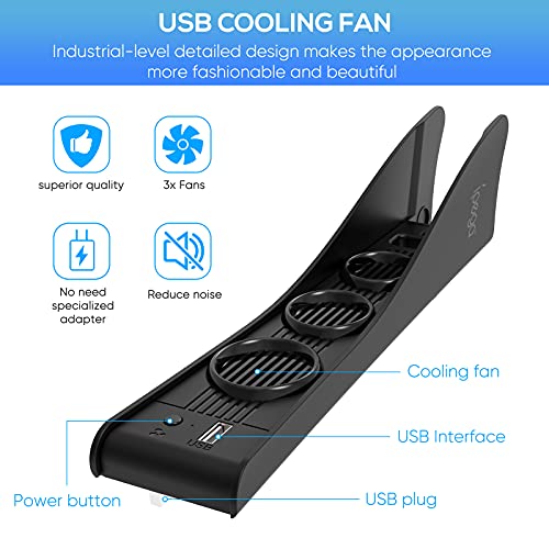 - 3 ventiladores: este ventilador de refrigeración universal tiene 3 puertos de ventilador, y el efecto de disipación de calor es notable. Disipa rápidamente el calor del anfitrión y mantiene su temperatura de trabajo. Se mantiene fresco cuando el juego está cargado y disfruta del juego