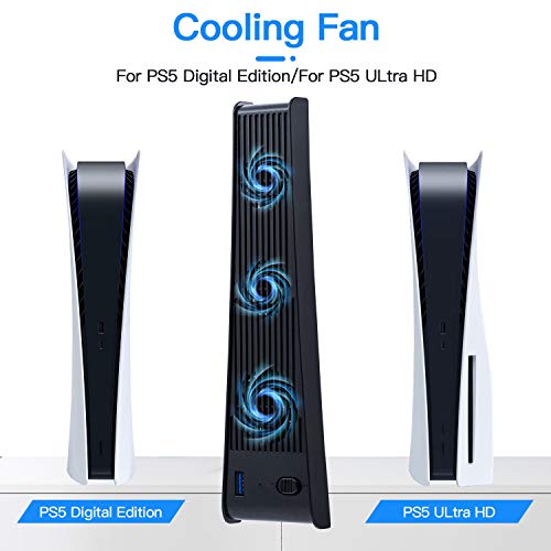 Mcbazel Cooling Ventiladores para PS5, Externo USB 3.0 Accesorio de Enfriador Compatible con PlayStation 5 Edición Digital / Consola Ultra HD - Negro