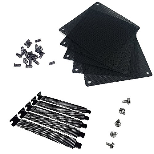 5 filtros antipolvo para el ventilador del ordenador, 120 mm, PVC + 5 cubiertas de ranura PCI, con tornillos