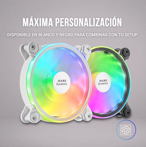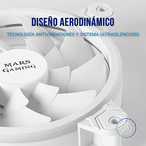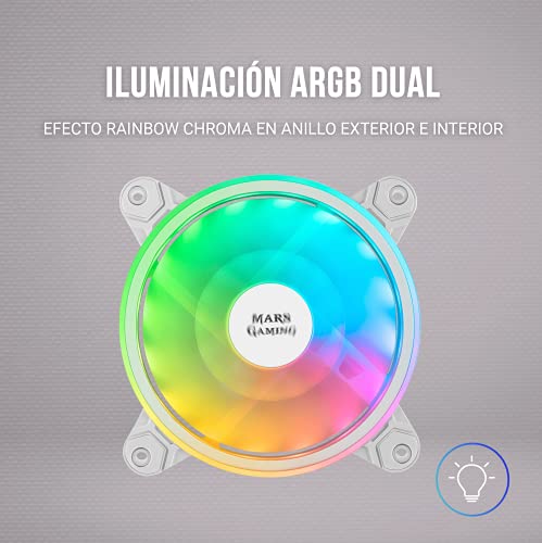 MARSGAMING MFXW, Ventilador PC 12cm, ARGB Dual, Ultra-silencioso 14db, Blanco