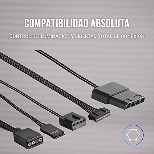- Iluminación argb dual: impresionante iluminación dual argb tanto en anillo exterior e interior; compatible con todo tipo de controladores y placas base argb; y en el caso de que no dispongas de ningún controlador argb, no hay problema, sólo con conectar el mfx obtendrás el más espectacular efecto de iluminación rainbow chroma automático