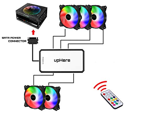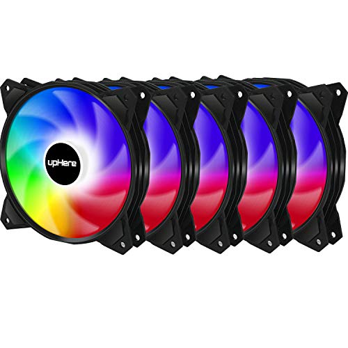 upHere 120mm - RGB LED Ventilador de PC - Ventilador para Ordenador con Control Remoto, Paquete de 5(PF1206-5)