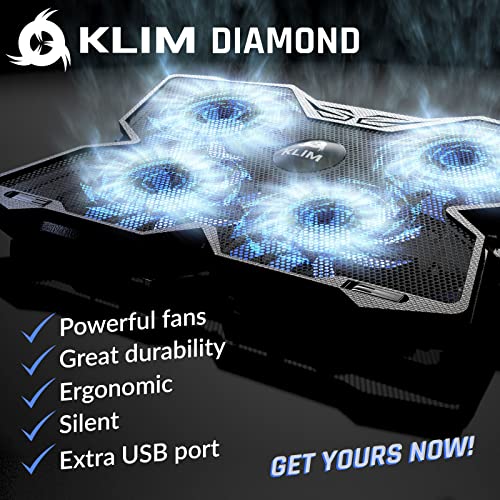 KLIM Wind Refrigeración para Ordenador Portátil – La más poderosa – Acción de Enfriamiento Rápido – Base Refrigerante Gaming de 4 Ventiladores con Soporte -Nueva Versión (Diamond)