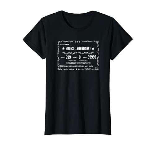 - Esta bonita camiseta de juegos es perfecta para las mujeres. Con esta divertida frase de Boobs Legendary Armor 999 Weight 9 Value 999 Bouncy Fun. - 70% de inteligencia masculina. Ver pero no tocar. Bonito regalo de cumpleaños para hermanas