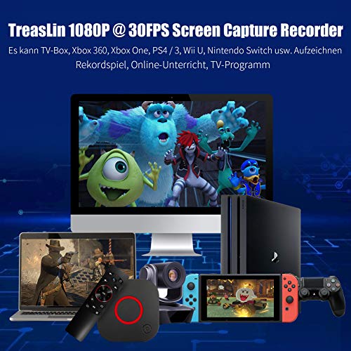TreasLin Tarjeta de captura de juegos sin PC, grabadora de pantalla, USB3.0 HDMI 1080P 30fps dispositivo de captura de vídeo, grabación con un solo clic, compatible con Xbox One PS4 Nintendo Switch