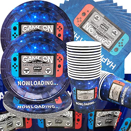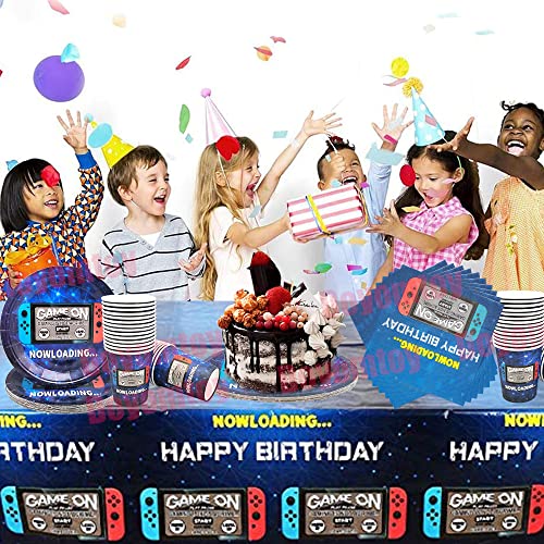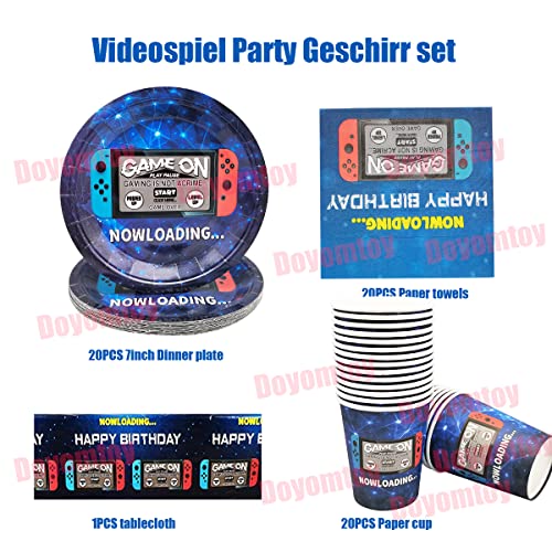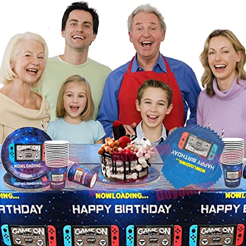 Doyomtoy Set vajilla de Fiesta para Juego, Game Party Supplies Vajilla, Incluye platos videojuegos, tazas, servilletas, Mantel, para Decoración de Videojuegos Fiesta De Cumpleaños- (Sirve20 Invitados)