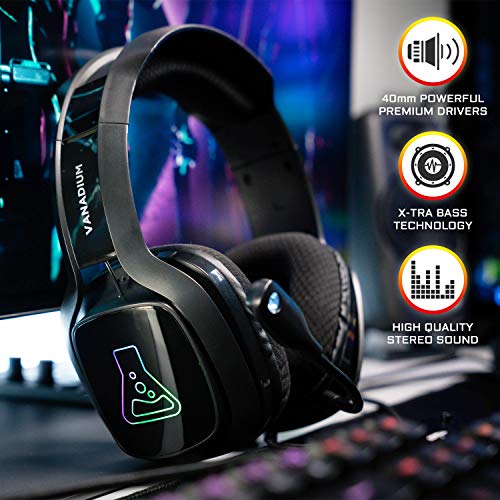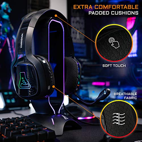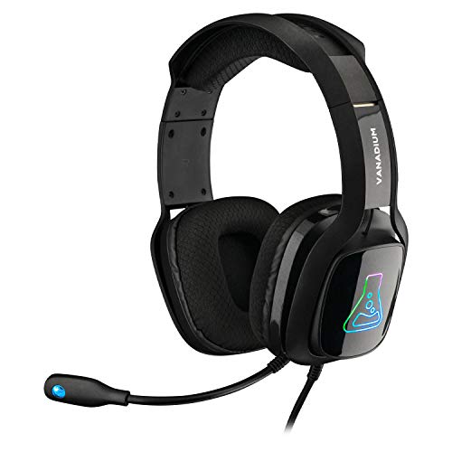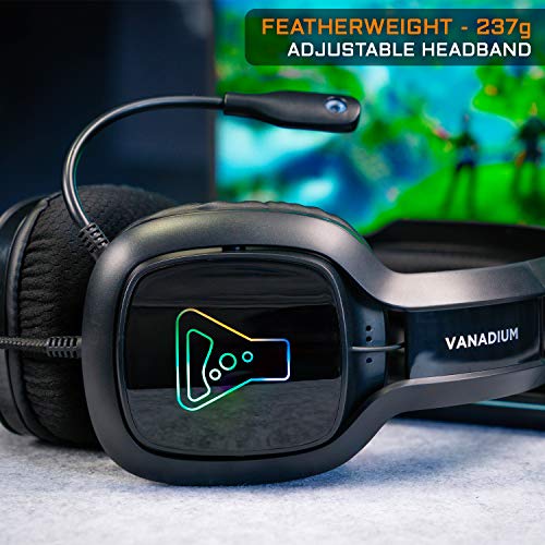 THE G-LAB Korp Vanadium Auriculares Gaming - Auriculares estéreo, Ultra Ligero, RGB - Auriculares con Micrófono, Jack de 3.5 mm para PC/PS4/Xbox One/Nintendo Switch/Mac/Smartphone - Nuevo (Negro)