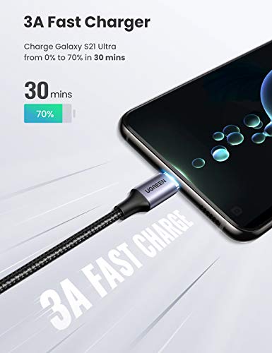 UGREEN Cable USB C, 3A Cable USB Tipo C Carga Rápida Nylon Trenzado y Sincronización de Datos Compatible con Galaxy S21 S20, Note10 S10 S9, Xiaomi Redmi Note 9 8, Mi 10 A2, Huawei P40/P30 (0,5 Metros)