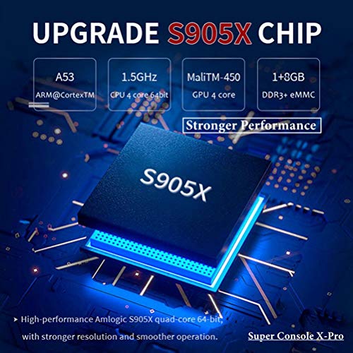 - Super Console X Pro está equipado con un chip S905X actualizado, sistema dual en la consola, más potente que el RK3326, con una CPU de 64 bits de 4 núcleos, el procesador de 5 núcleos admite decodificación de video 4K a 60 fps y procesamiento HDR
