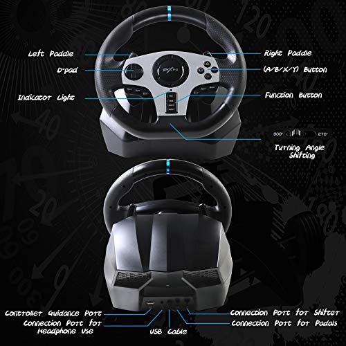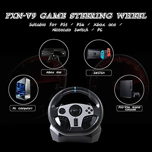 - [Fuerte compatibilidad] La rueda de juego PXN V9 es compatible con la plataforma Xbox series s / Xbox series x / Xbox One / PC (Windows 7/8/10) / PS3 / PS4 / Nintendo Switch. Simule la palanca de cambios de un automóvil real, y el cambio de marcha se puede completar con una operación simple, lo que mejora enormemente la alegría del control.