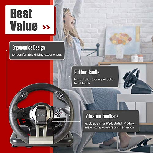 Serafim R1+ Rueda de carreras - Volante del juego con el pedal de respuesta - Compatible con Xbox One, PS4, PS3, Switch, PC, iOS, Android