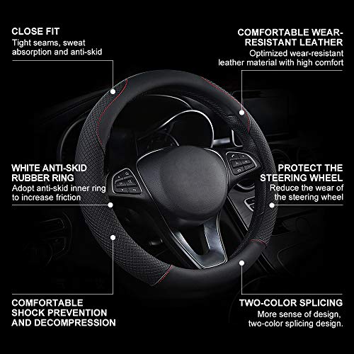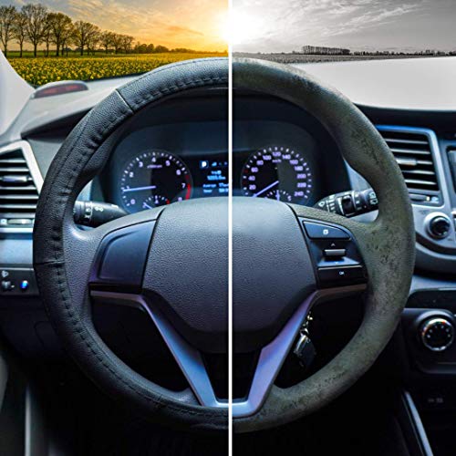FREESOO Funda Volante Coche Cubierta de Volante de Cuero de Microfibra Antideslizante Suave Universal 37-38 cm Automóvil Adecuado para Todas las Estaciones Elegante