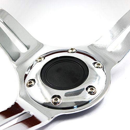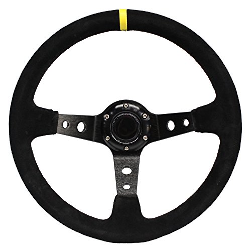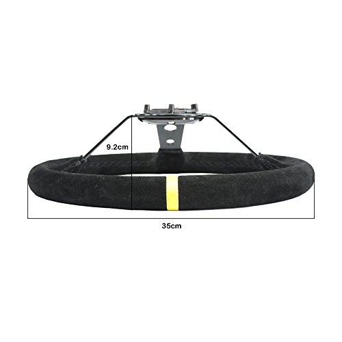 - Dimensiones: Diametro volante 350mm; es el tamaño adecuado en volantes para coche, ya que te ayudara a conducir de una manera mas adecuada y segura; podras realizar curvas con mucho menos esfuerzo; este volante racing tiene un grosor de 32/29 para un agarre mas efectivo; cuenta con una profundidad de 63mm