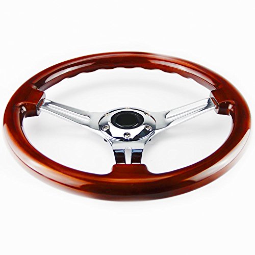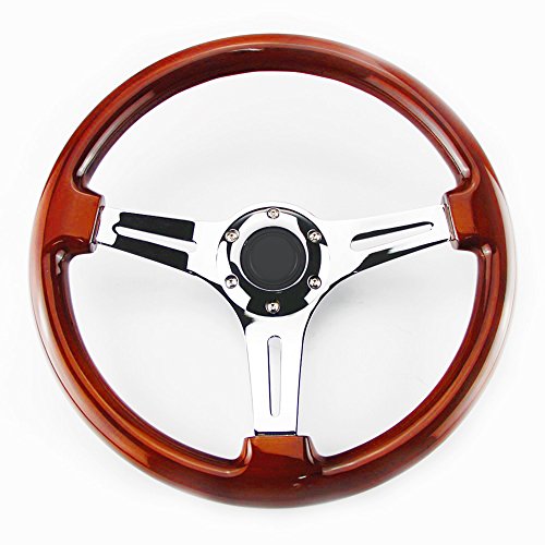 MODAUTO Volante Deportivo Universal, Volante de Madera, Semidesplazado, Diámetro 350mm, Modelo G045