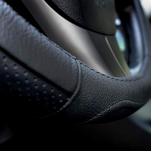 Upgrade4cars Funda Volante Coche Poli Piel Negro Universal | 37-39 cm Diámetro Exterior | Accesorios Coches Interior Decoracion | Ideas Regalos