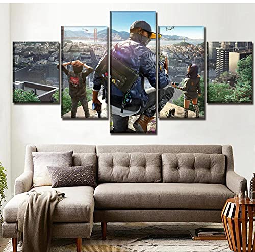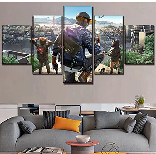 5 paneles con imagen modular enmarcada Impresión de lienzo Pintura Un juego Juego Watch Dogs 2 póster de papel Arte de la pared Decoración del hogar 150x80cm