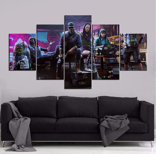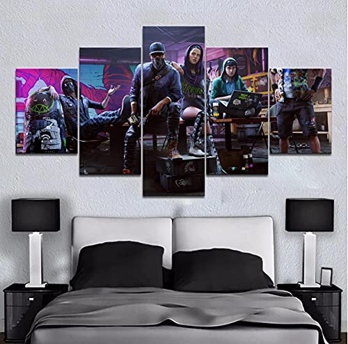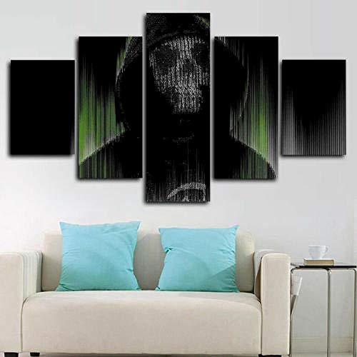 Dedsec Watch Dogs 2 Hacker Juego Cuadro En Lienzo 5 Piezas Impresiones En Lienzo,5 Piezas Lienzo Arte Pared,Mural 5 Piezas Pintura En Lienzo,Cuadros Decoracion Salon 5 Piezas Cuadro Moderno XXL