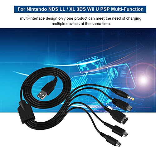 5 en 1 cargador USB para Nintendo NDS LL/XL 3DS Wii U PSP Cable de carga multifunción, 47.2in