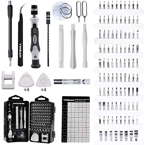 - ?120 en 1 Destornilladores Precisión: El juego de destornilladores de precisión YINSAN podría usarse en la reparación común de electrodomésticos, como televisores, aires acondicionados, ventiladores, refrigeradores, automóviles, etc. También es una necesidad en el desmontaje y mantenimiento de teléfonos móviles, cámaras digitales, relojes, anteojos, computadoras portátiles, computadoras portátiles y consolas de juegos.