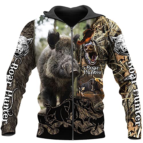 Sudadera con capucha de la novedad cazador de jabalí impresión 3D hombres con capucha sudadera unisex Streetwear Pullover, Sudadera con cremallera, L