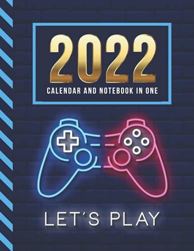 2022 Calendar and Notebook In One: 8.5x11 Monthly Planner with Note Paper Combo / Neon Game Controller - Gamer Art / Large Organizer With Whole Month ... Ruled Lined Sheets / Life Organizing Gift