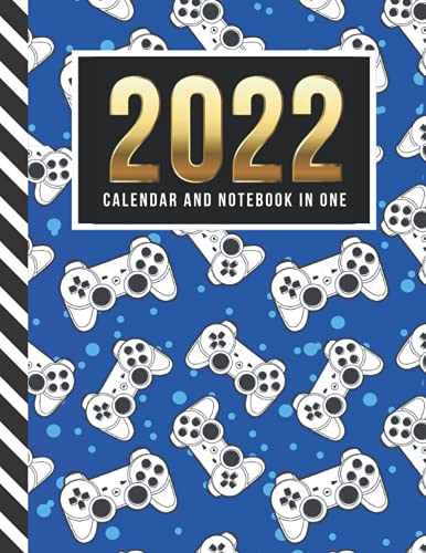 2022 Calendar and Notebook In One: 8.5x11 Monthly Planner with Note Paper Combo / White Game Controller on Blue Dot Art / Large Organizer With Whole ... Ruled Lined Sheets / Life Organizing Gift