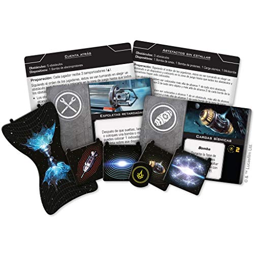 - Nicia la cuenta atrás y prepárate para la detonación con arsenal completo, una expansión que incluye numerosos dispositivos para x-wing; además de las cartas de mejora y fichas para minas de proximidad, redes conner, bombas de iones y demás material explosivo, este pack de dispositivos contiene 6 cartas de entorno