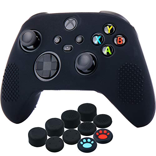 YoRHa Silicona Funda Piel Carcasas Cubierta para Xbox Series X/S Mando x 1 (Negro) con Agarres para el Pulgar x 10