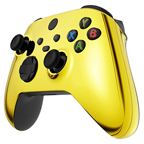 eXtremeRate Carcasa para Mando Xbox Series X S Carcasa Delantera+Carcasa de Grip Protector Brillante Empuñadura Agarre Cubierta Shell para Control de Xbox Series S X-No Incluye Mando(Dorado Cromo)