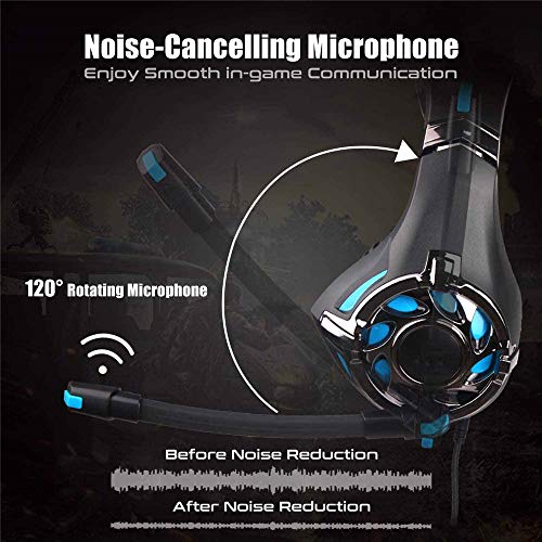 - [Ruido ajustable micrófono con cancelación] El micrófono ajustable de juego Auriculares con cancelación de ruido han techniques.Not sólo se puede ajustar fácilmente el ángulo del micrófono, pero también se filtra la mayor parte del ruido ambiental en su area.You puede comunicar la información con mayor claridad, mientras usted está en un juego, a mejorar su experiencia de juego ..