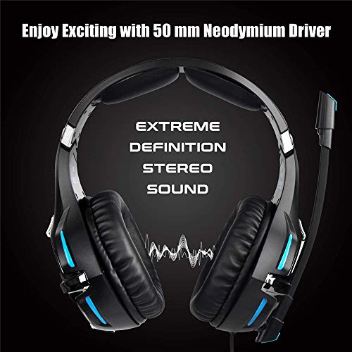 - [] Estéreo envolvente Efecto espléndido aislamiento del ruido ambiente y auriculares para juegos con unidad de altavoz de 50 mm profesional sintonizado ofrece una alta calidad de sonido envolvente simulado para hacer la experiencia de juego aún más intense.You puede oír la mayoría de los efectos de sonido y datos a un mejor control del juego ..