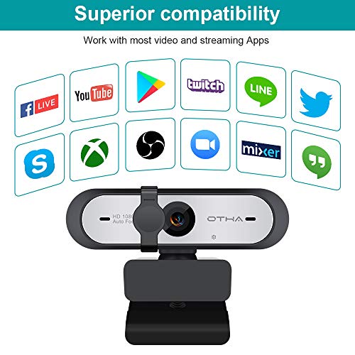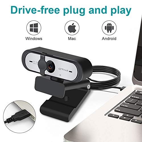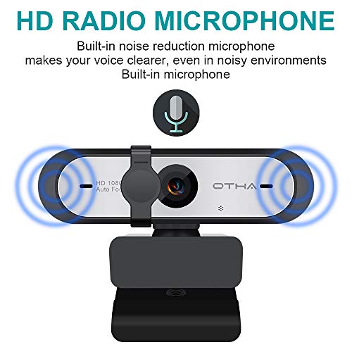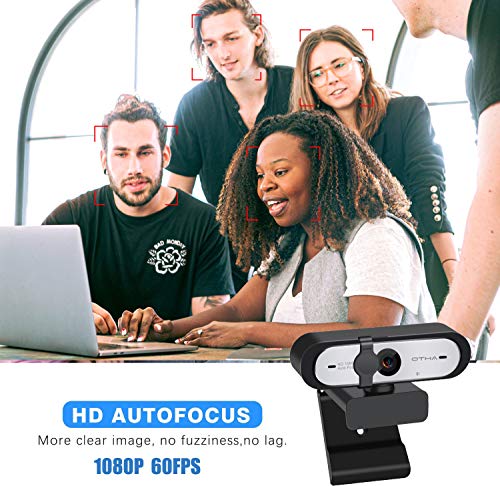 OTHA AutoFocus 1080p Webcam 60fps con Doble micrófono y protección de la privacidad,HD USB Computer Web Cámara,para cursos en línea en Streaming,Compatible con Zoom/Skype/Facetime/Team