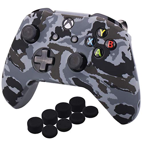 YoRHa Agua Transferir Impresión Camuflaje Silicona Cubrir la Piel Caso para Xbox One X/One S Controlador x 1 (Nieve) con empuñaduras Pro x 8