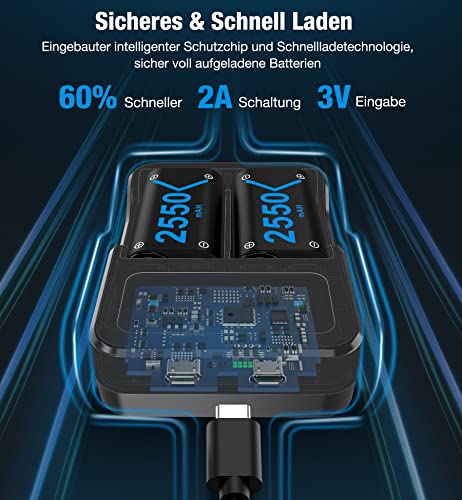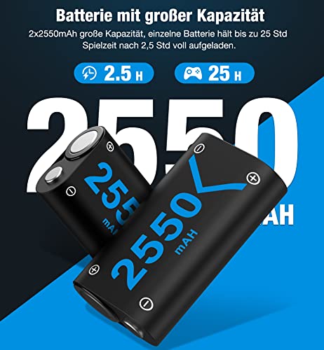 Akku-net - Batería para controlador de Xbox One/Series X&S (2 unidades, 2550 mAh, Ni-MH, compatible con Xbox Series X&S/Xbox One S/Xbox One X/Xbox One Elite/Xbox One