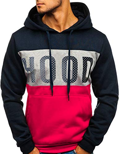 GNRSPTY Hombre Sudadera con Capucha Colores de Contraste Camiseta Manga Larga Otoño Hoodie Pullover Sweatshirt,Azul Marino,M