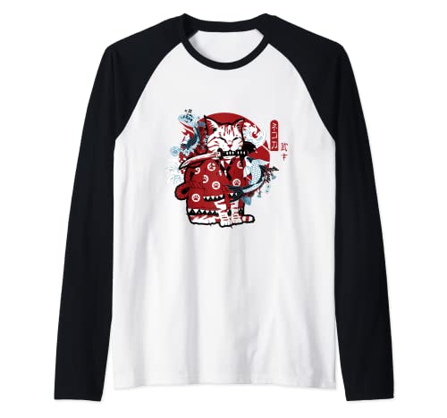 Cool Yakuza Gato Samurai Japonés Gato Ninja Japón Neko Camiseta Manga Raglan