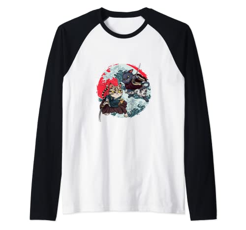 Gato Ninja Sinobi Samurai Espadas Katana Kendo Yakuza Japón Camiseta Manga Raglan