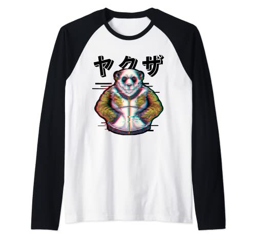 Japan Anime Panda Yakuza Style Vaporwave Glitch Vaporwave Glitch Camiseta Manga Raglan