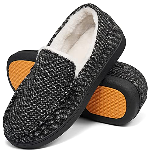 Mishansha Zapatillas de Casa Hombre Mujer Invierno Mocasines Pantuflas Cálido Pantufla de Espuma Viscoelástica con Suela de Goma Antideslizante, Negro 40