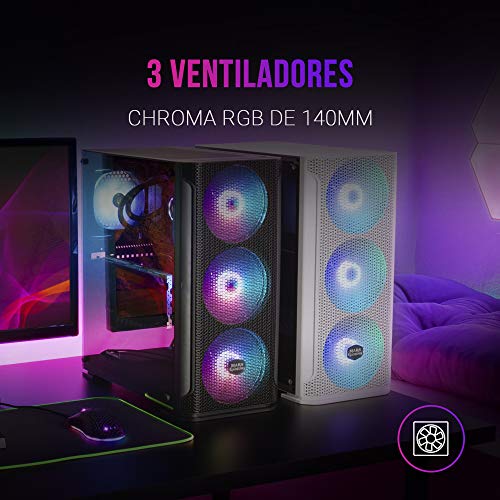 - [REFRIGERACIÓN MÁXIMA] La caja gaming MCEX incluye 3 ventiladores frontales de 140 mm con 13 efectos especiales y rejilla frontal Diamond sin restricción de flujo; Además, ofrece soporte para hasta 8 ventiladores, para refrigeración líquida, incluyendo sistemas extra-grandes con radiadores de 360 o 280mm y soporte PCI dual para instalar tarjetas gráficas en vertical