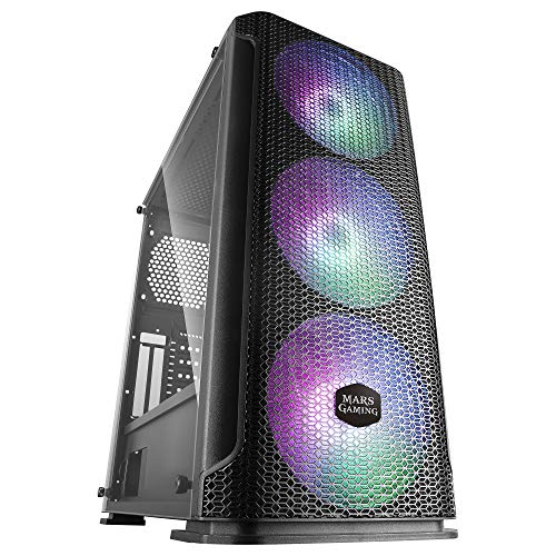 MARSGAMING MCEX, Caja Gaming Negra E-ATX, 3 Ventiladores RGB 14cm+Frontal Mesh