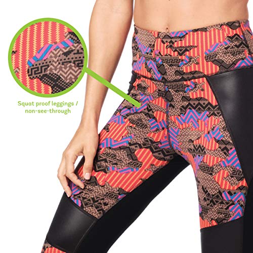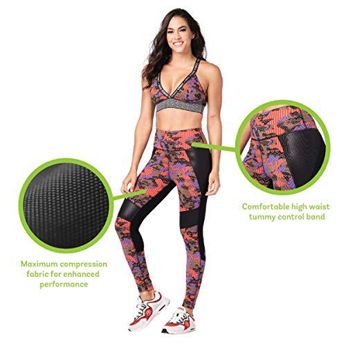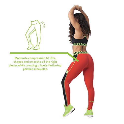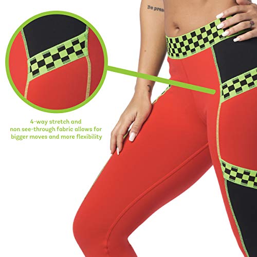 Zumba Fitness® Weit Jacquard Bund Kompression Sexy Sport Workout Leggings Damen, Rojo, XS para Mujer