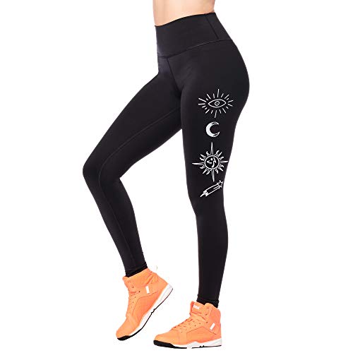 Zumba Dance Leggings Estampados Pretina Ancha de Cintura Fitness Entrenamiento Mallas de Deporte de Mujer, Bold Black 3, XS