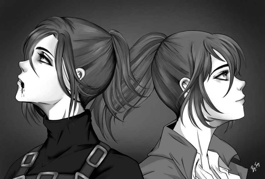 Fery9B hace una comparación fría, lado a lado, de cómo es ella en el show de la derecha. La cabeza inclinada hacia el cielo, imaginando cómo podría ser un mundo pacífico. A la izquierda, ves a una Sasha más acostumbrada a la batalla, con sangre en la comisura de su boca. En lugar de ver esperanza en el cielo, esta versión sabe que no puede haber paz alguna.