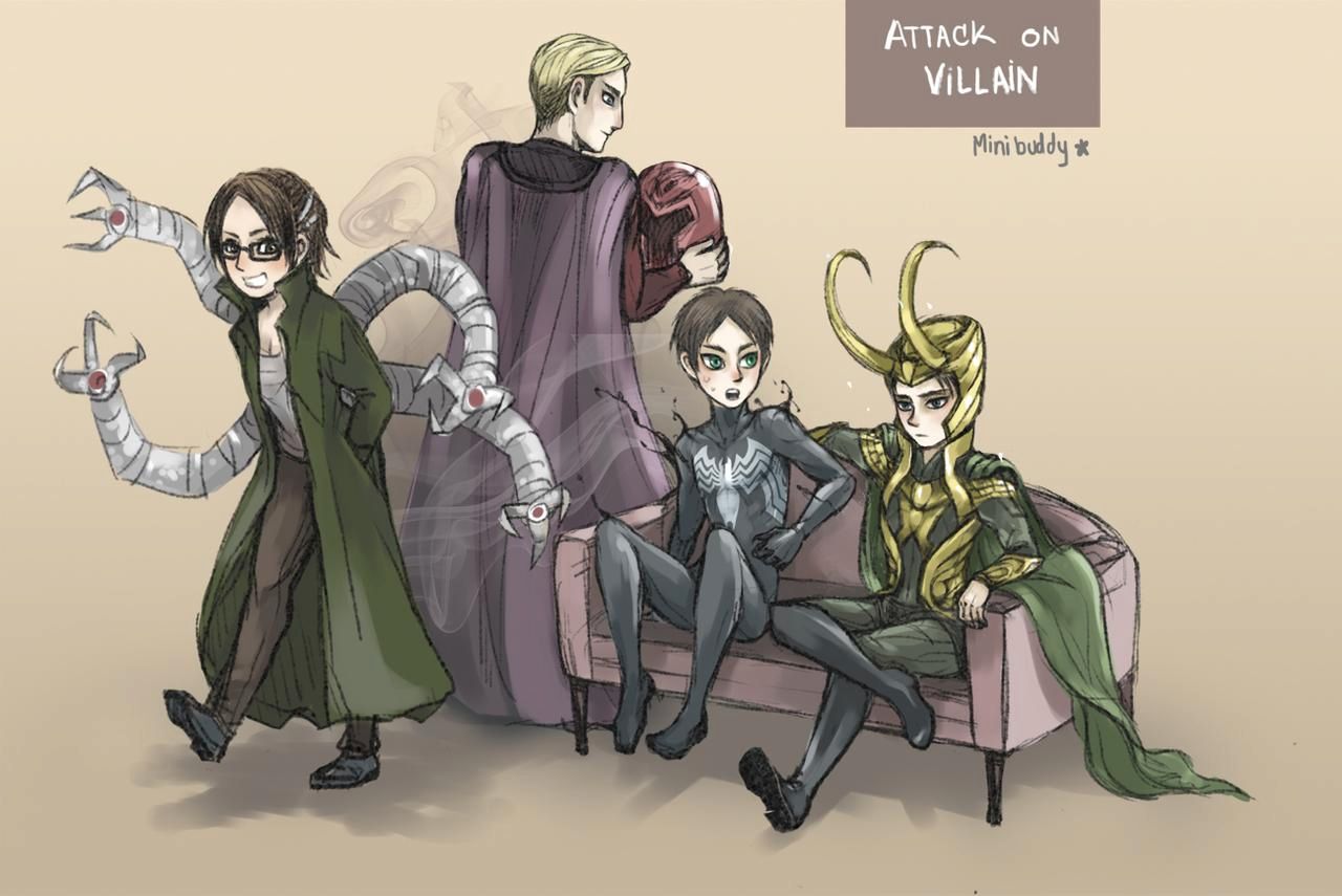La pieza final es un poco más ligera que el resto, pintando a algunos de los héroes del Ataque a Titán como villanos de la Maravilla. Zoe es naturalmente el Doctor Octopus debido a su amor por la ciencia. De alguna manera se las arregla para hacer que esos miembros mecánicos se vean adorables. El siguiente es Levi como Loki, una extraña combinación, pero que llena bien.