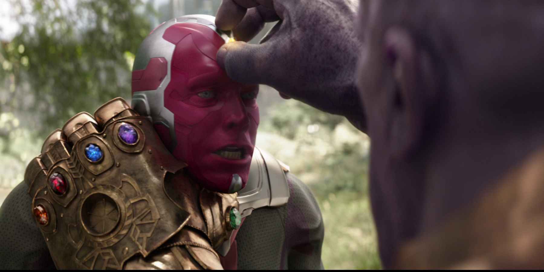 Aunque el equipo hizo un valiente esfuerzo y Shuri estuvo a punto de quitarle la Piedra de la Mente a Visión, al final Wanda se vio obligada a usar sus propias habilidades derivadas de la Piedra de la Mente para destruir la Piedra del Infinito junto con Visión. Por desgracia, Thanos fue capaz de rebobinar el tiempo y arrancó con saña la Piedra Mental de la frente de Visión, matándolo de nuevo.