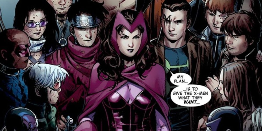 Sin embargo, esto se convirtió en que la Bruja Escarlata tampoco es mutante. En su lugar, se reveló como un humano que obtuvo sus poderes gracias a los experimentos realizados por el Alto Evolutivo. En el amanecer de la continuidad de X , se la llama "La Gran Pretendiente" después de que otros mutantes se enteran de que es humana y no uno de ellos.