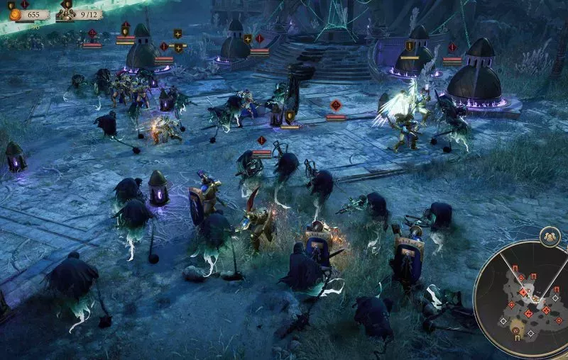 Los Nighthaunt son sirvientes no muertos de Nagash, el dios de la muerte, y se basan en el enjambre de oponentes con unidades etéreas. En un avance práctico, NME pudo jugar contra los Nighthaunt en un nivel de campaña para un jugador, en el que las fuerzas humanas de la Guardia de la Tormenta se ven acosadas por las fuerzas de Nagash en un templo encantado.