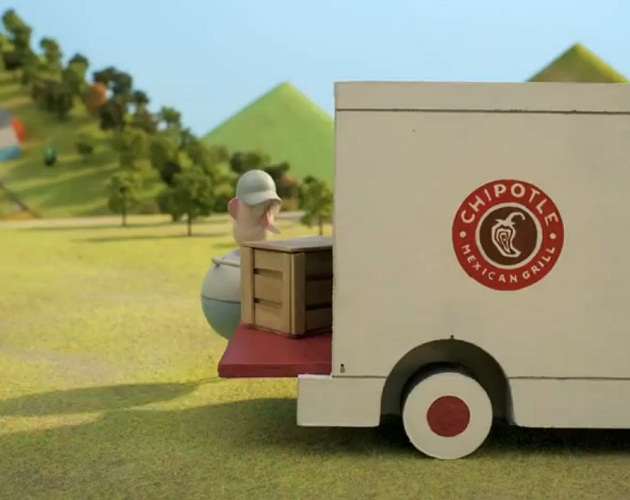 Y aquí viene lo bueno. El vídeo acaba con uno de los cerditos empaquetado (no sabemos si vivo o descuartizado) y enviado a la cadena de restaurantes The Chipotle en un camión. Sí, cadena de restaurantes. Nos parece el colmo del cinismo que un restaurante de comida rápida mexicana se dedique a pregonar las bondades de las granjas familiares, pero ahí está. Hasta el momento camión es muy bonito: